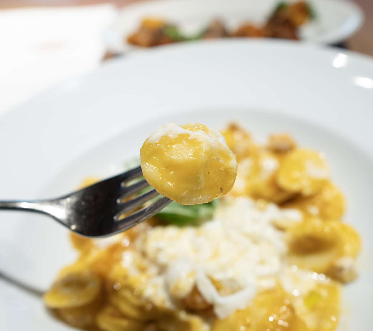 オレキエッテはクニクニした弾力を発揮。その全てをマイルドにし、絡み合わせる、クリーミーなストラッチャテッラ。