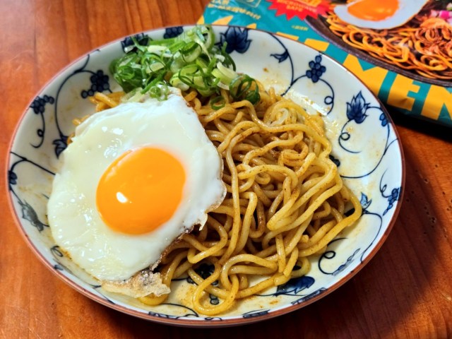 お腹が空いていたのでさっそく作ってみることに。レンジで温めてスパイスと混ぜるだけの簡単調理なのだが、生麺タイプだけあって麺がモチモチ!