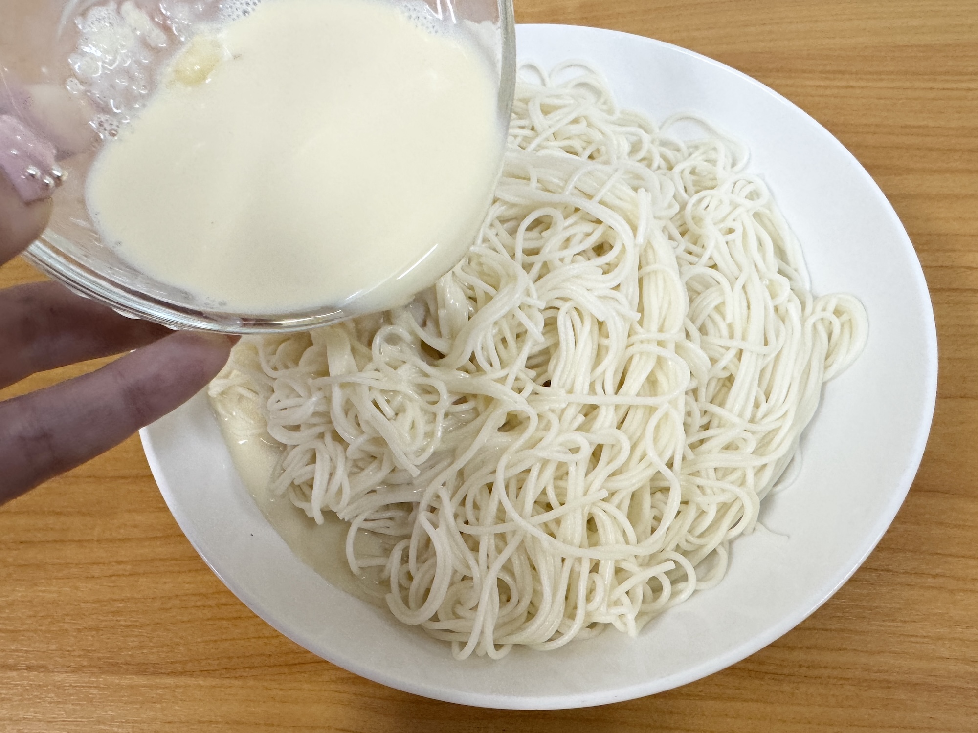 豆乳つゆ自体は豆乳にめんつゆを混ぜるだけでOK。ズボラさんでも絶対に作れるぞ! 自信を持って!