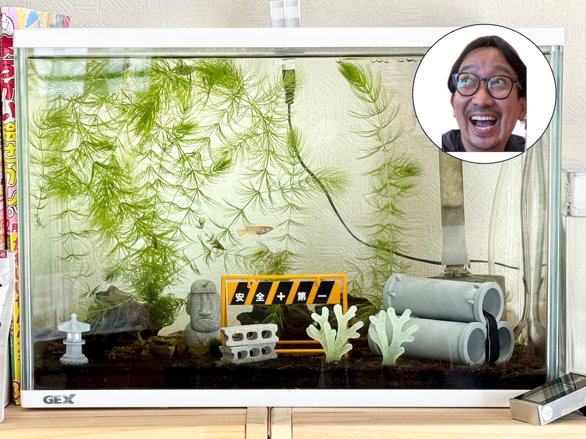 「私にとってセリアはメダカグッズの宝庫なのだ。メダカを飼うと水槽の中がマンネリ化してアートとして機能しなくなる。そこでセリアのグッズを水槽に入れてオシャレにするわけだ。
