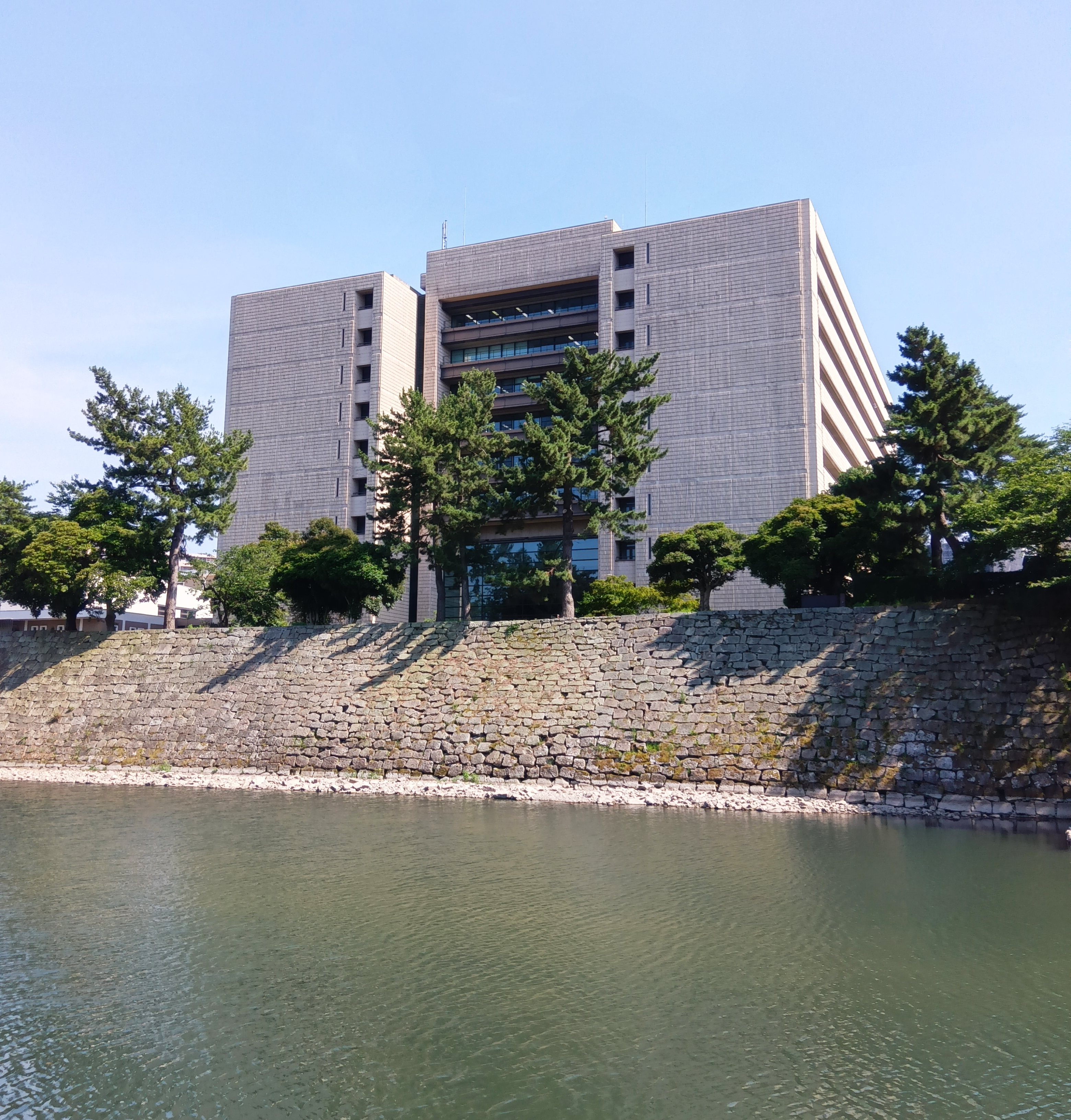 道すがら聞いた木内さんの説明によると、福井県庁は城の跡地に建っているらしい。まあ、跡地ということは福井城はすでにないわけだし、歴史的に見ると県庁建てて良い場所なんじゃないかなあ。何か問題あるんですか? いい加減に話を聞いている時はそう返事してたんだけど、到着して目の当たりにすると……