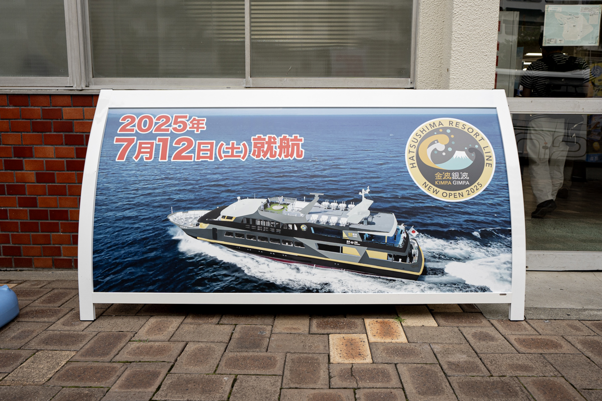 2025年7月12日から、熱海~初島航路に「金波銀波(きんぱぎんぱ)」という新しい船が就航! これに伴い、航路の名も初島リゾートラインになったもよう。