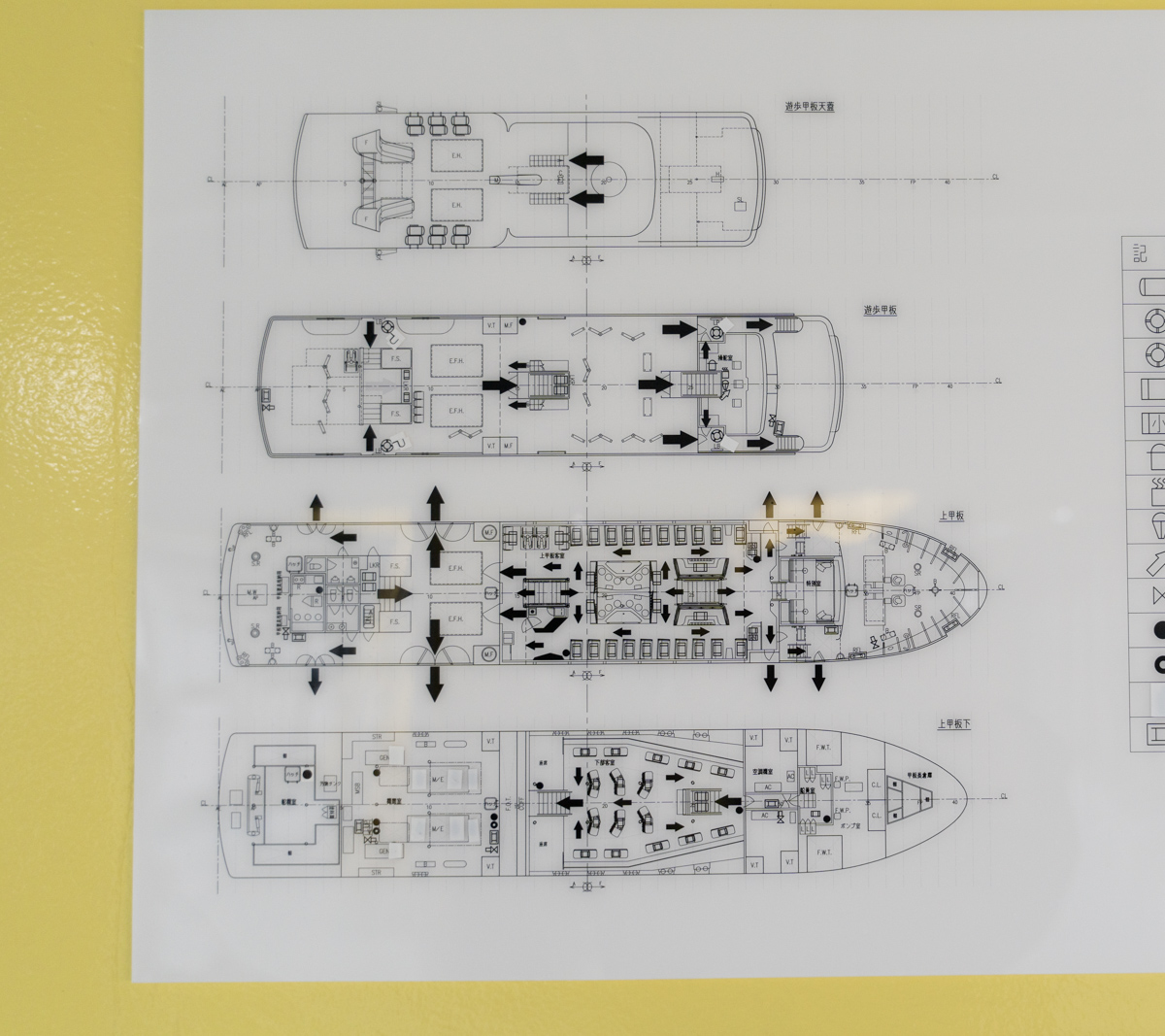 船内の見取り図はこんな感じ。なるほど、地階から3階の、全4階層になっているのか。
