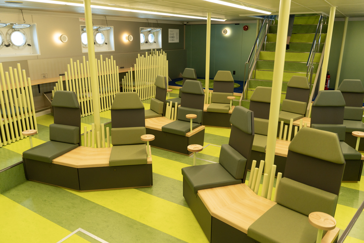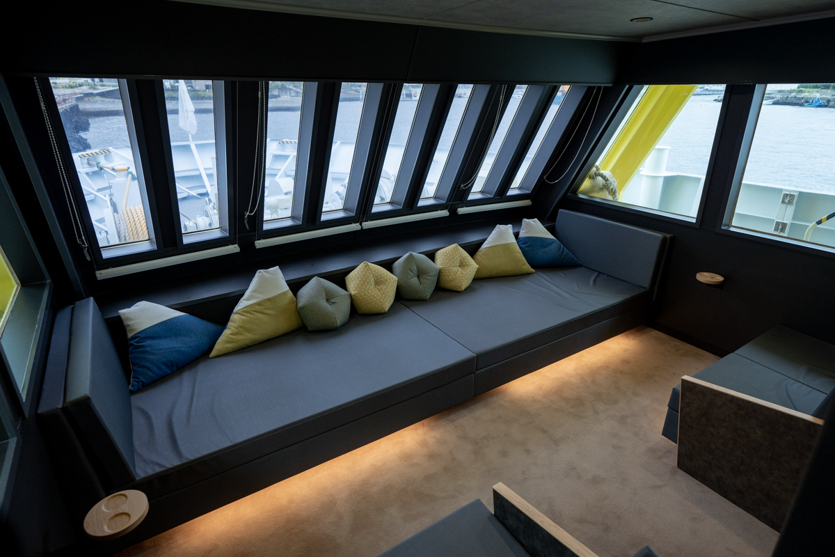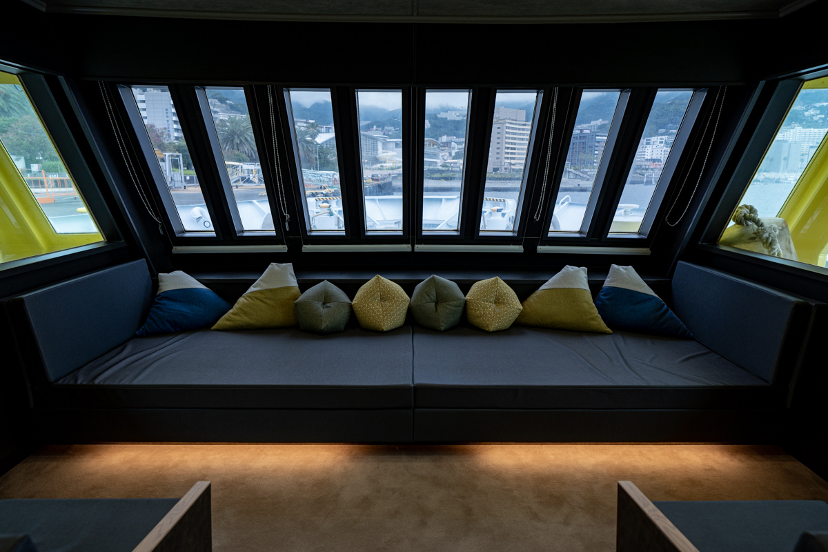 キッズなどは、例の竹馬ベンチや展望デッキではしゃいでいる間に到着するのではないか。そう長くない就航時間に対し、船内のデザインのもたらす楽しさや快適さは十二分だ。