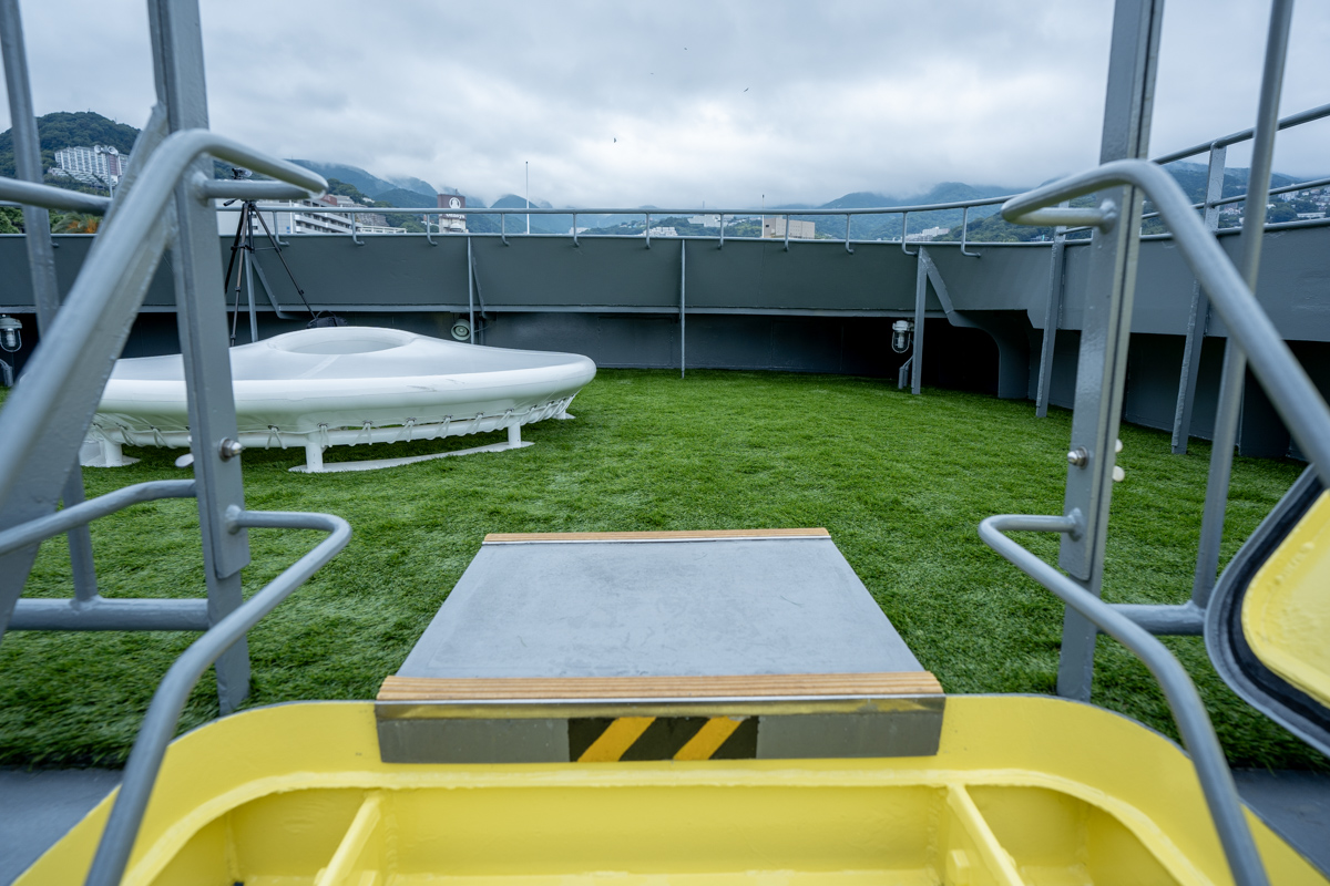 上から順に攻めていこう。ここが展望デッキ。上の図だと遊歩甲板天蓋にあたる。