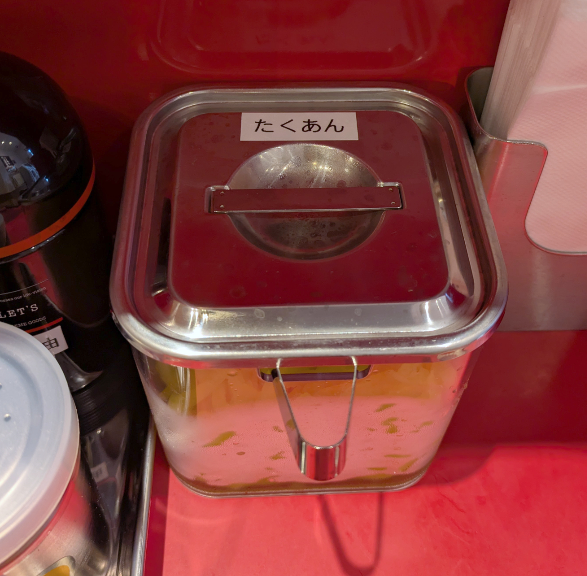 それは、たくあんだ。定食があるとはいえ、白ご飯がメインではないので、ラーメン屋にたくあんは珍しい気がするな。