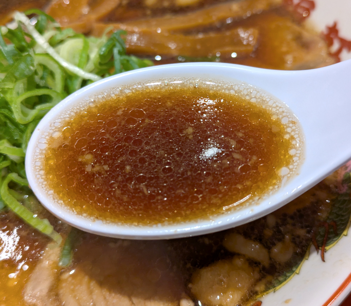 ラーメンは黒醤油というだけあって、スープは真っ黒。雰囲気としては京都の黒ラーメンに近いかも。