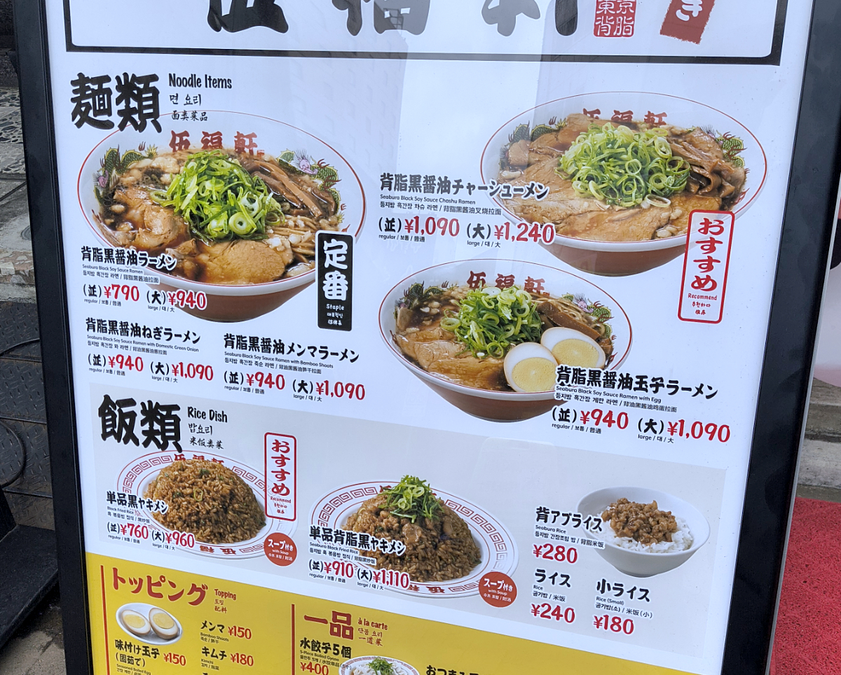 そのほかの店舗はどうなったのか? というと、新しいラーメンチェーンの「伍福軒」が出店することになった。それも今日(2025年7月15日)と明日で、10軒が同時にオープンするのである。