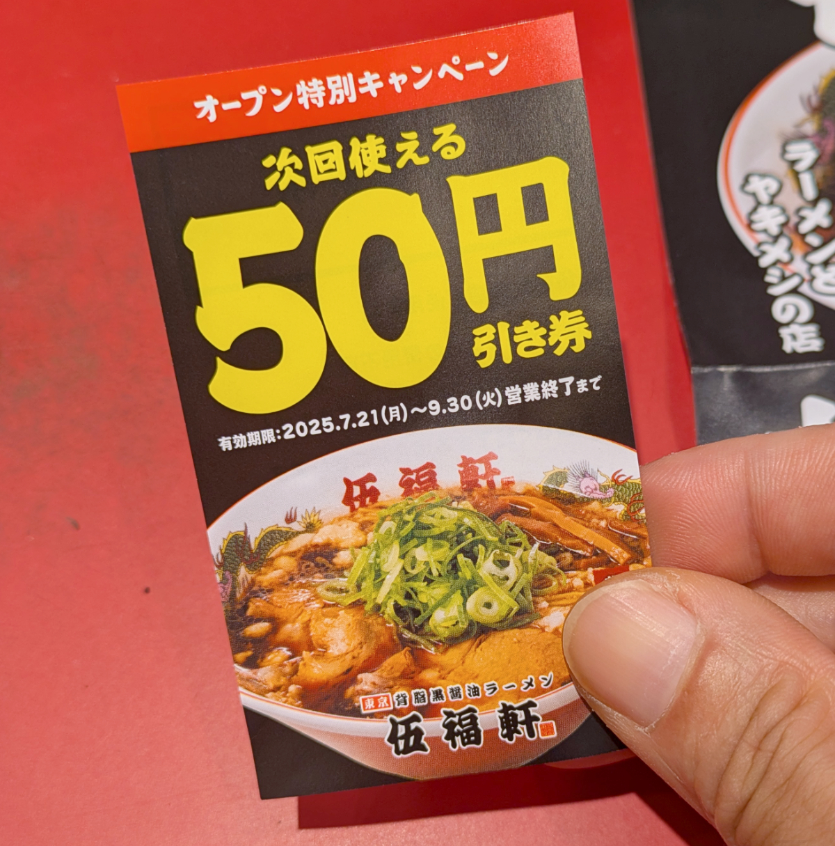 さらに入店して着席すると、次回使える50円引きクーポンをもらえた。新ブランドの開業なので、あの手この手でリピートしてもらおうという気概がうかがえる。