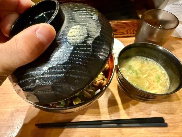 そんなわけで回転が早いため、店内がほとんど満席だったとしても数十分も待つことはない。グランプリを5連覇するほどのレジェンド豚丼が、大手チェーン店ばりのスピードでやってくるのはビビる。さっそくフタを取ると……