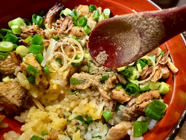 卵を絡めて濃厚さをまとったチャーシューが山椒のシャープな香りでぐっと引き締まるうえに後味も軽くなる。しかもこれで終わりではないのだ。