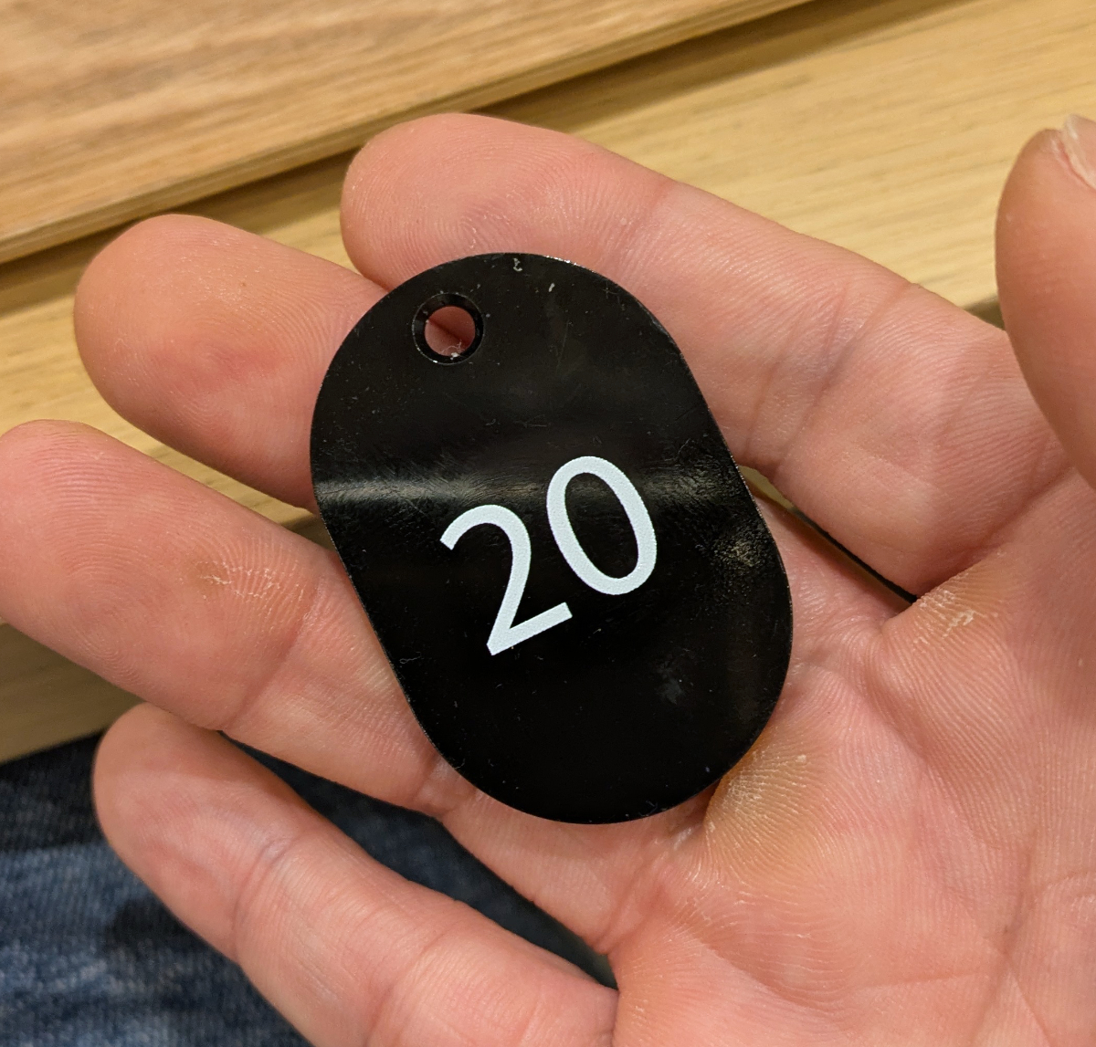 食べ放題は、料理の提供時に札を渡されるので、おかわりする際にその札を見せて「おかわりのアジフライ〇枚ください」と頼むのである。出来上がると札の番号を呼ばれるので、自分で取りに行くことになる。