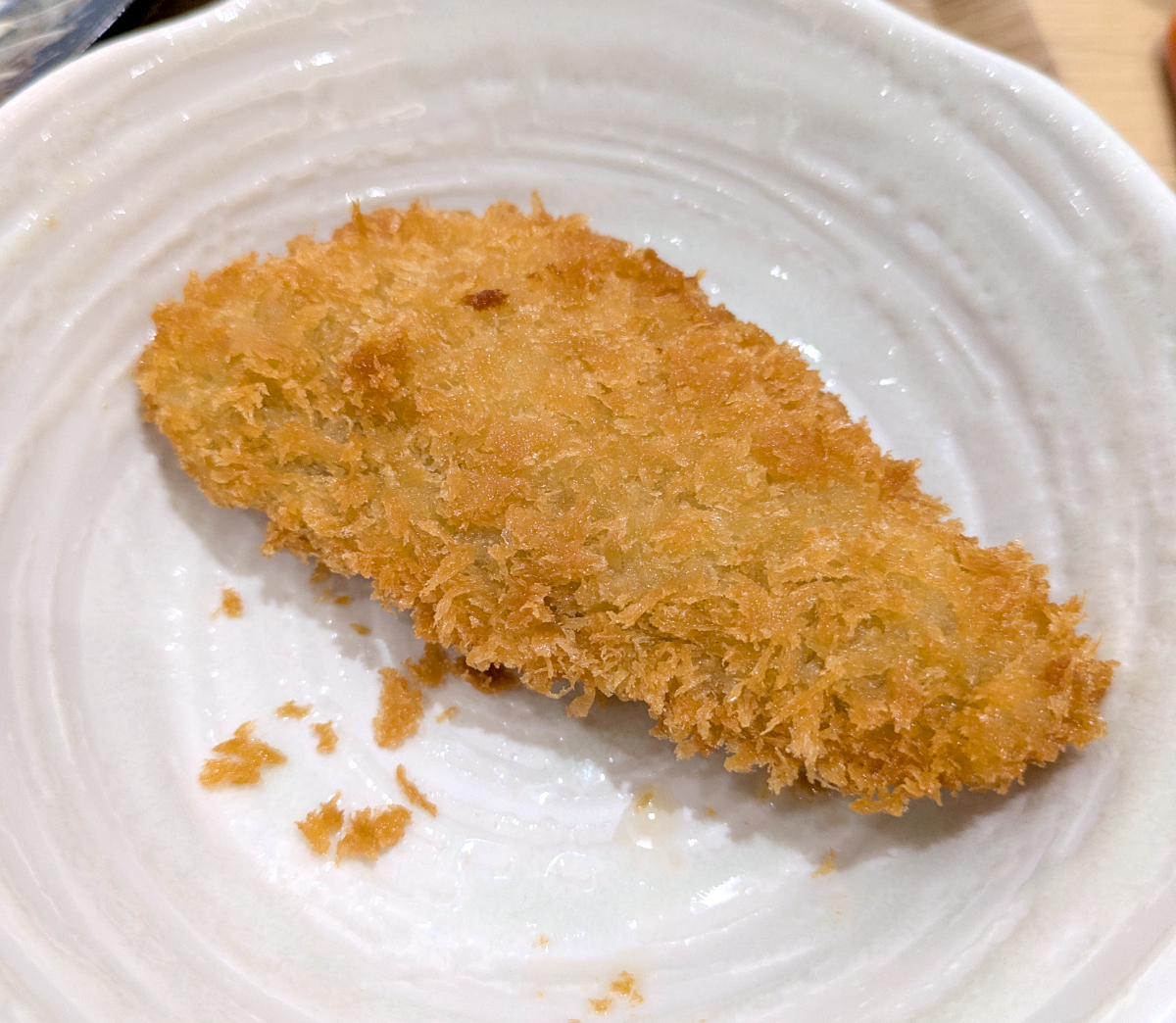 ここでアジのたたきでご飯を食べて、一旦リフレッシュ。ちなみに揚げ物ではあるが、良質な油を使用しているようで、食べてて口の中が重くなる感じは一切ない。いくらでも食べられる気がしてくる。