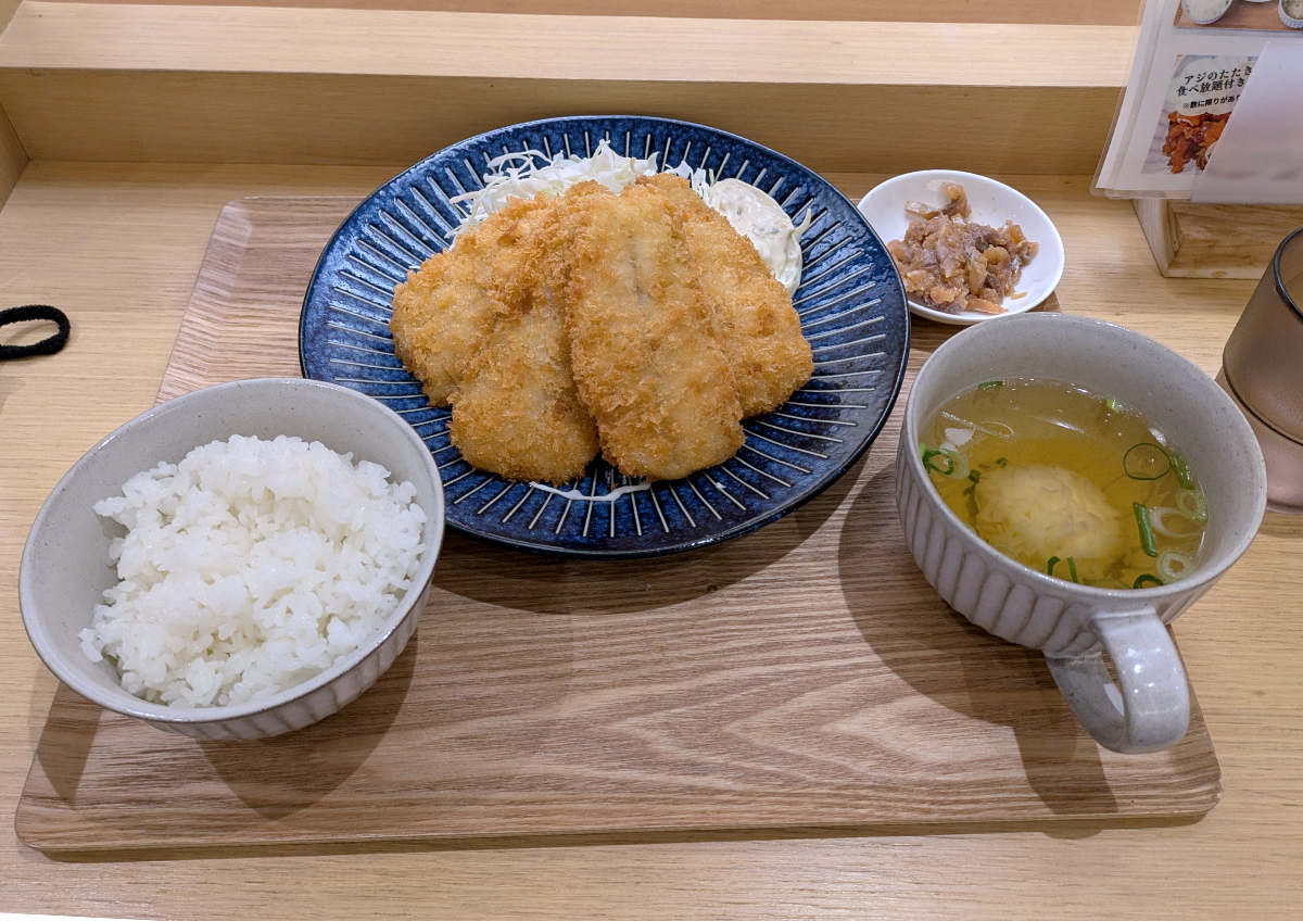 そうして、1時間半を費やして求めたアジフライ定食がコレです!
