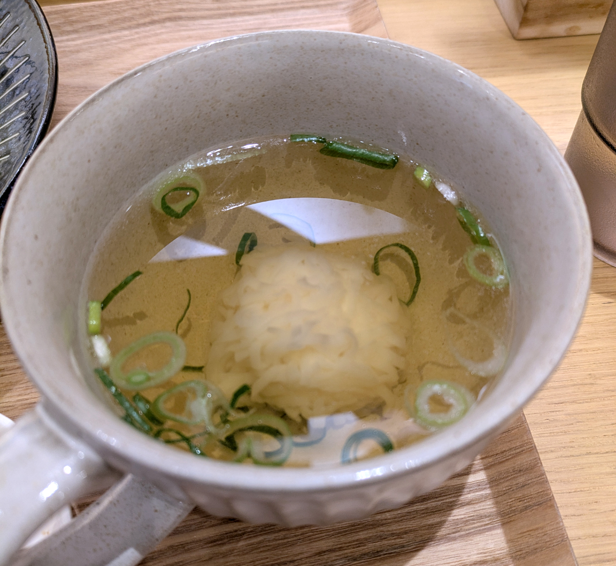 スープは、いかしゅうまい入り。このいかしゅうまいも運営元の株式会社三陽の取り扱い商品のひとつだ。