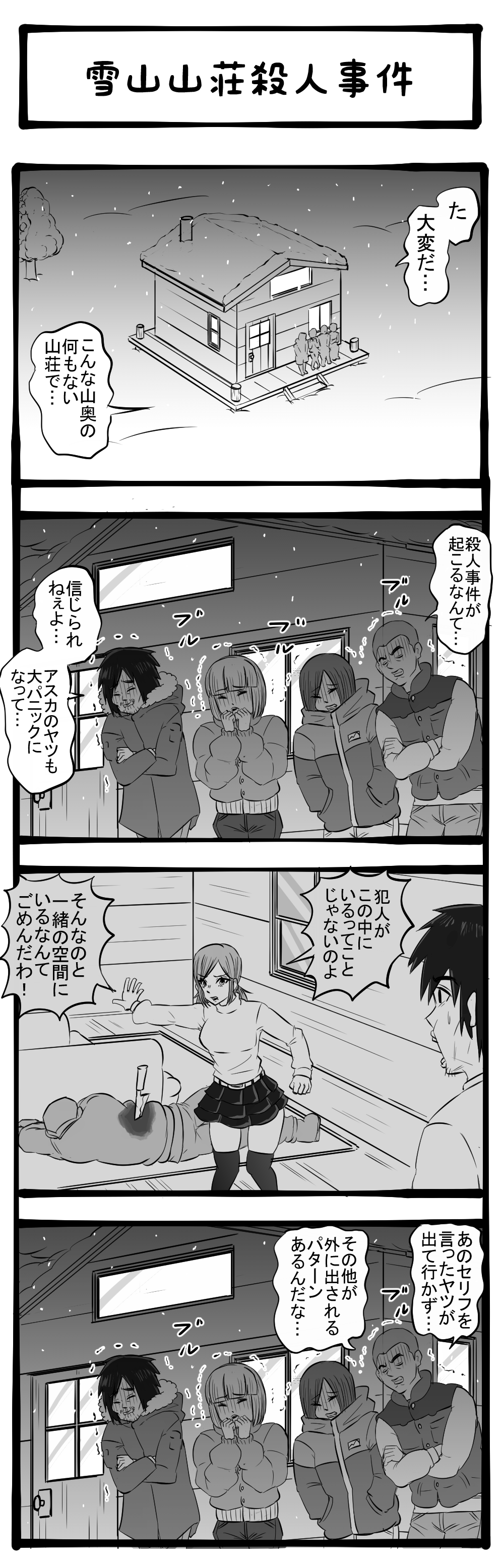 お前らが動け! お決まりの展開通りにはさせない悲劇の現場! 四コマサボタージュBYD第149回「雪山山荘殺人事件」