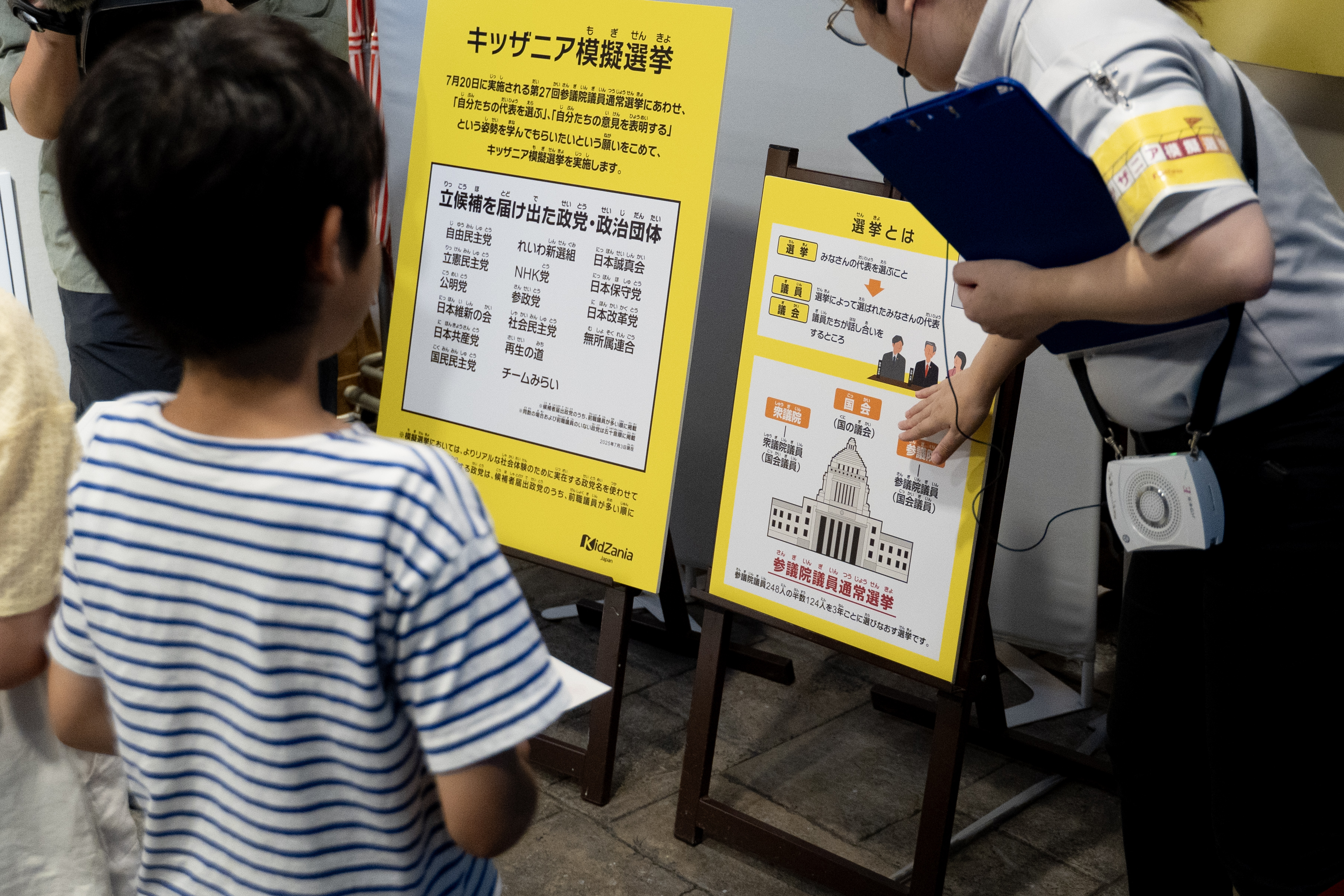 いやでも、いきなり選挙とか参議院とか言われても無理ゲーでは……? そこはキッザニア。投票の前に、スタッフによる簡単な説明が行われるので安心だ!