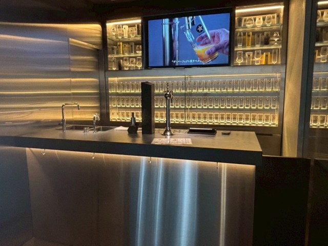 サッポロ黒ラベルを “最高の状態” で楽しめると話題のフラッグシップバーで、6周年を機に7月5日にリニューアルしたばかり。暗めの照明で落ち着いた雰囲気、そして「THE BAR」のロゴが目印だ。