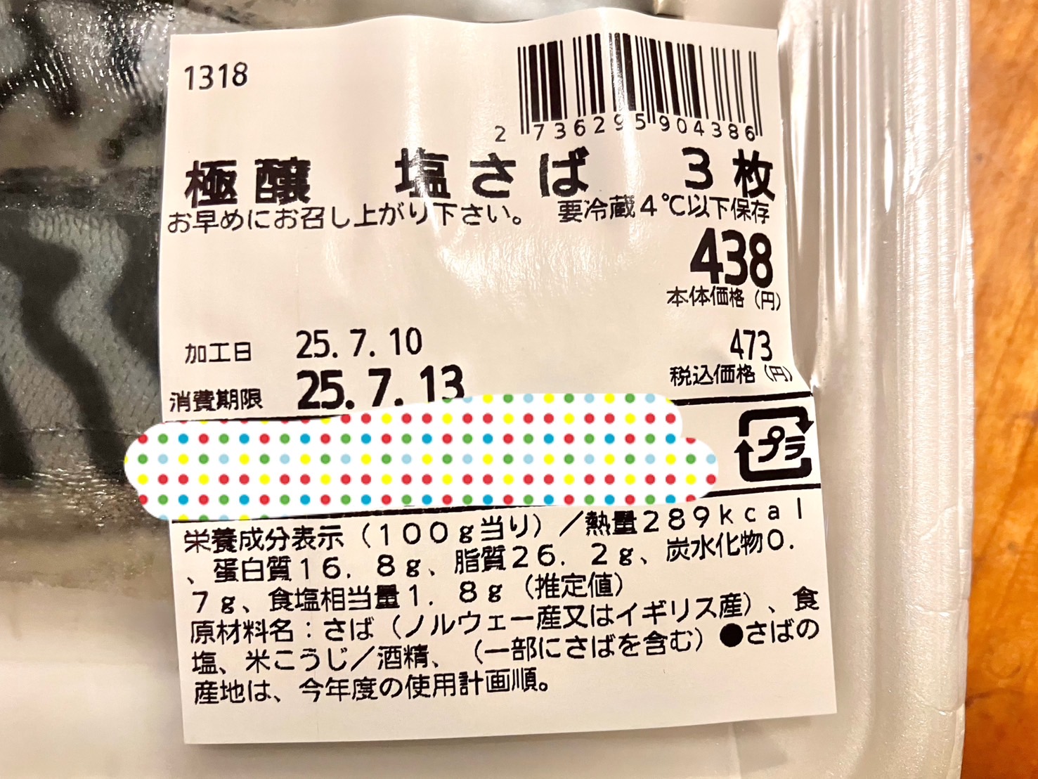 安い方の鯖の原材料名には「さば、食塩、米こうじ / 酒精」と書かれているけれど、別格には「さば、食塩、昆布エキス」と書かれていた。