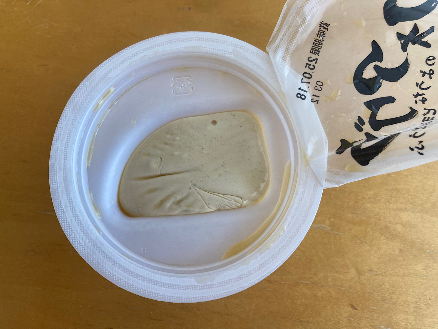 開封するとこんな感じ。豆腐本体と、「トリュフ風味のソース」。