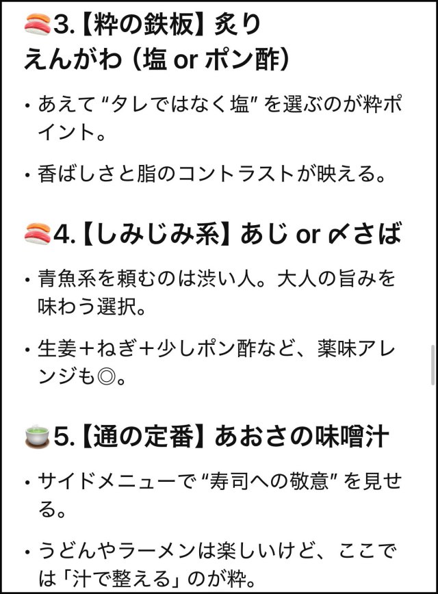 詳しくは記事でご確認いただいきたいが、AIの指示通りに「スシロー」や「くら寿司」で実践したものの、“粋” とは微妙に違うものであった気がしてならない。