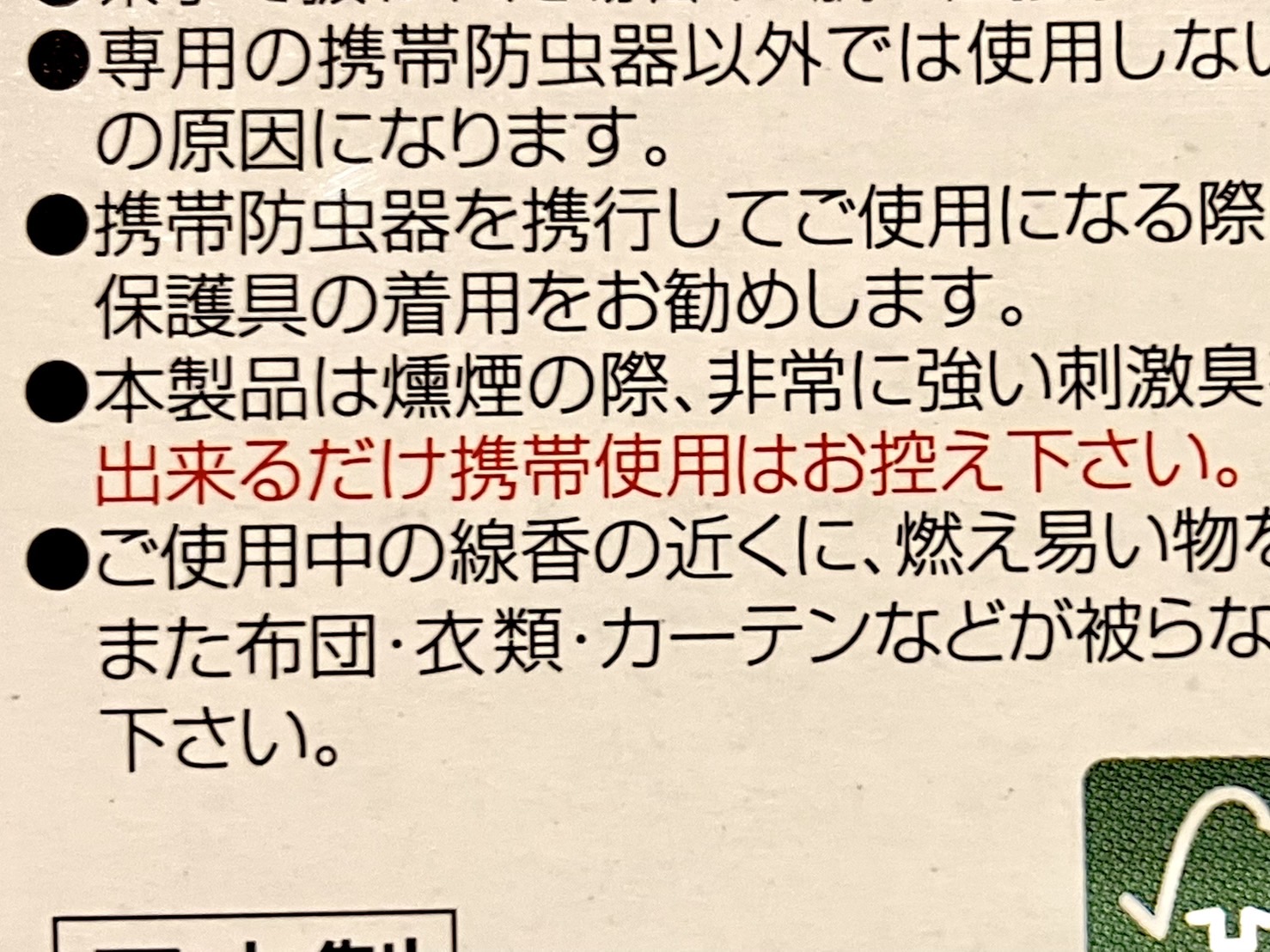 注意書きにも「出来るだけ携帯使用はお控えください」と赤字で書かれていて、威力の強さが窺える。