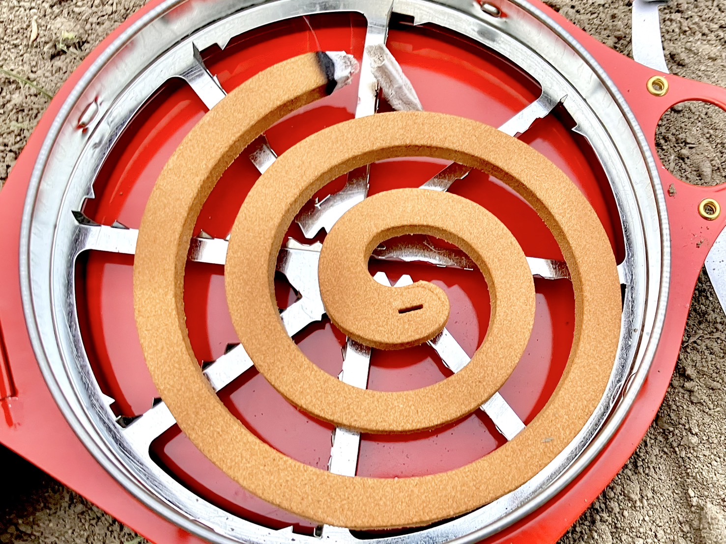 獣よけ線香は一般的な蚊取り線香と比べてかなり分厚いので、着火するのが少し難しかった。