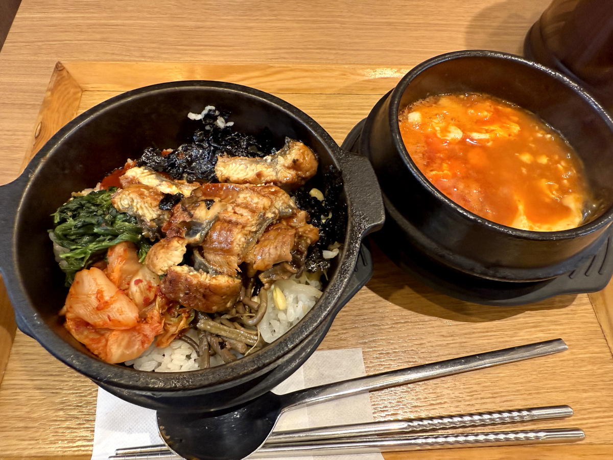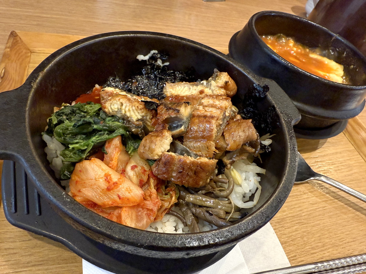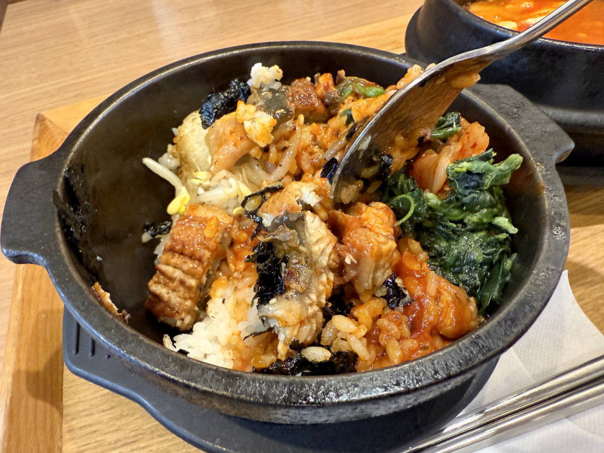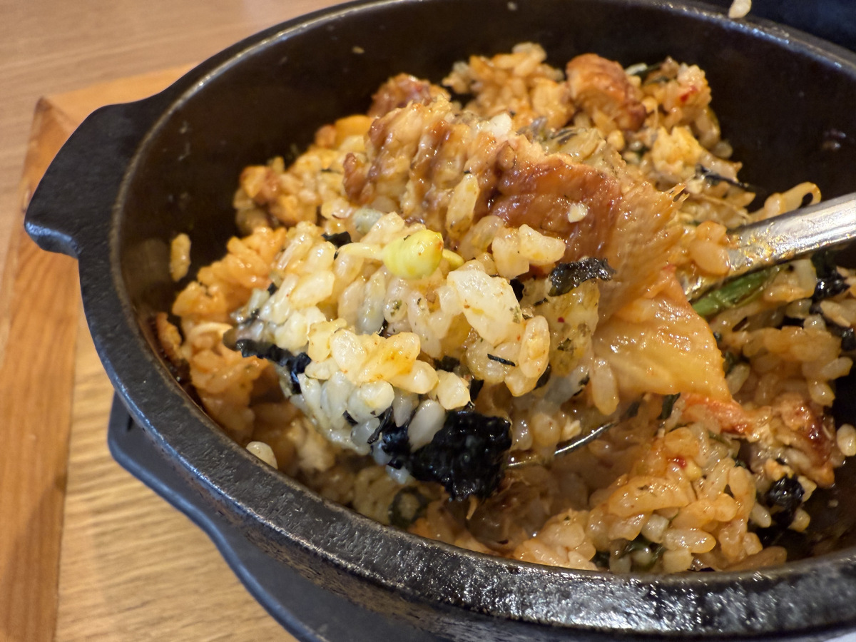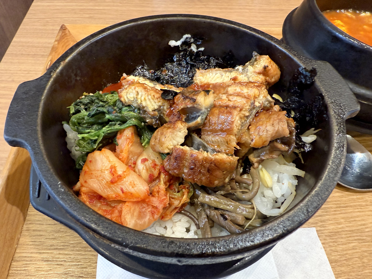 またうなぎのタレの効果だろうか、全体的に甘くマイルドな石焼きビビンバだったことも特徴的。通常の石焼きビビンバよりもかなり丸みのある味わいだったのは、うなぎがビビンバに負けていない証拠と言えるだろう。
