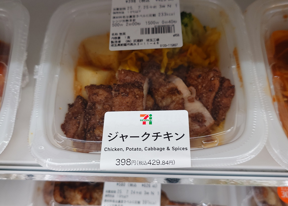 ということで、まずやってきたのはセブン。店舗によって扱いの有無があるため、見つけるのに苦労した。袋込みで432円。四角い容器の総菜群の一角にて発見。