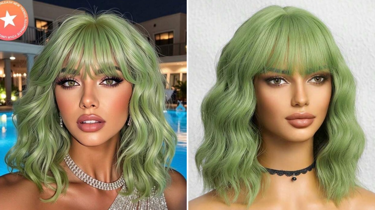 商品名「14インチ マルチカラー ショート カーリー フリンジ ナチュラル ファッション 合成ウィッグ 女性の日常 パーティー クリスマス用 グリーン」(1136円)