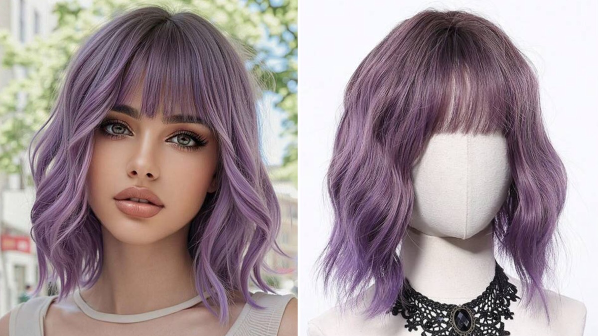 商品名「12インチ パープルボブウィッグ 前髪付き 波巻きウィッグ 耐熱性合成毛ウィッグ、女性の日常、パーティー、コスプレ、ミュージックフェスに使用」(1240円)