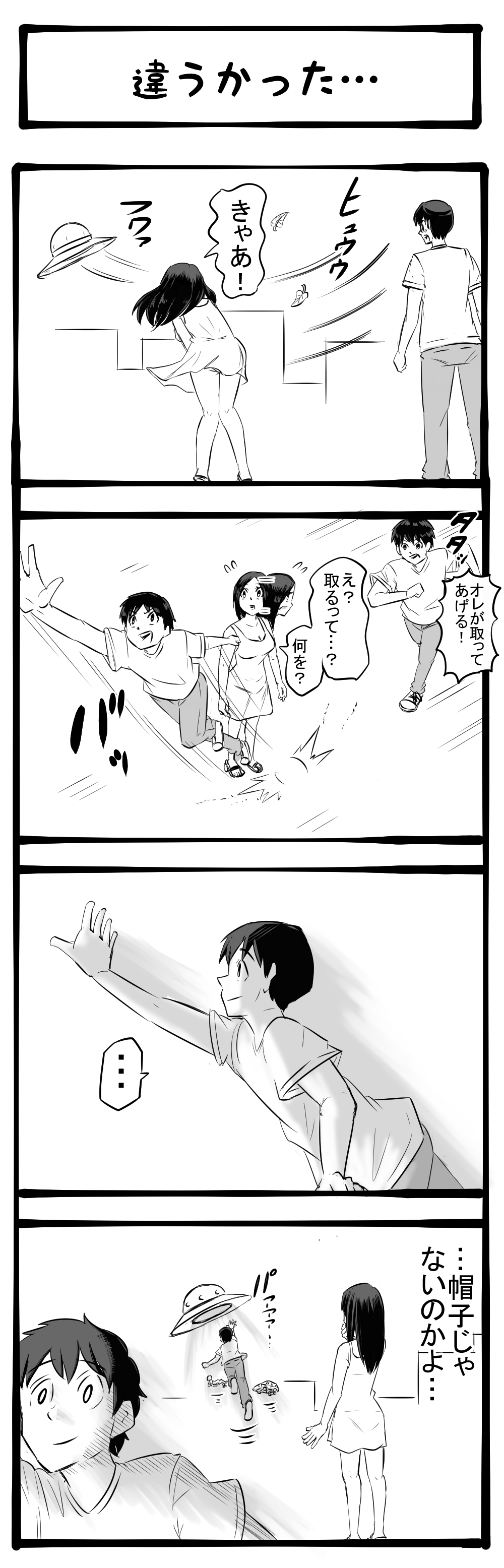 遠近感のワナ! 自ら近寄って行った青年! 四コマサボタージュBYD第155回「違うかった…」