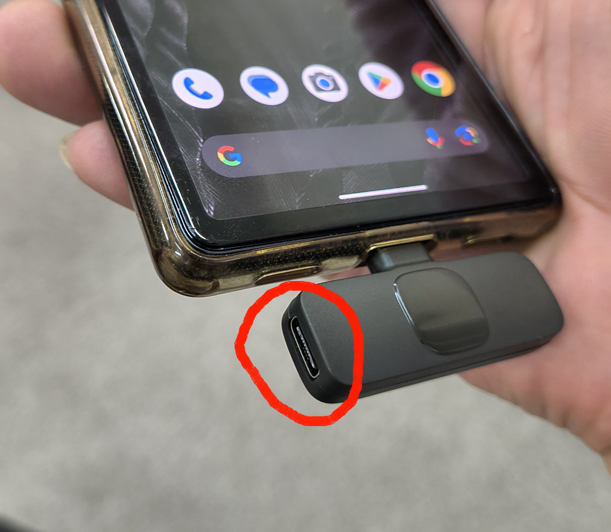 ▼レシーバー側面にはType-C接続をついており、スマホに給電しながら使用することも可能だ