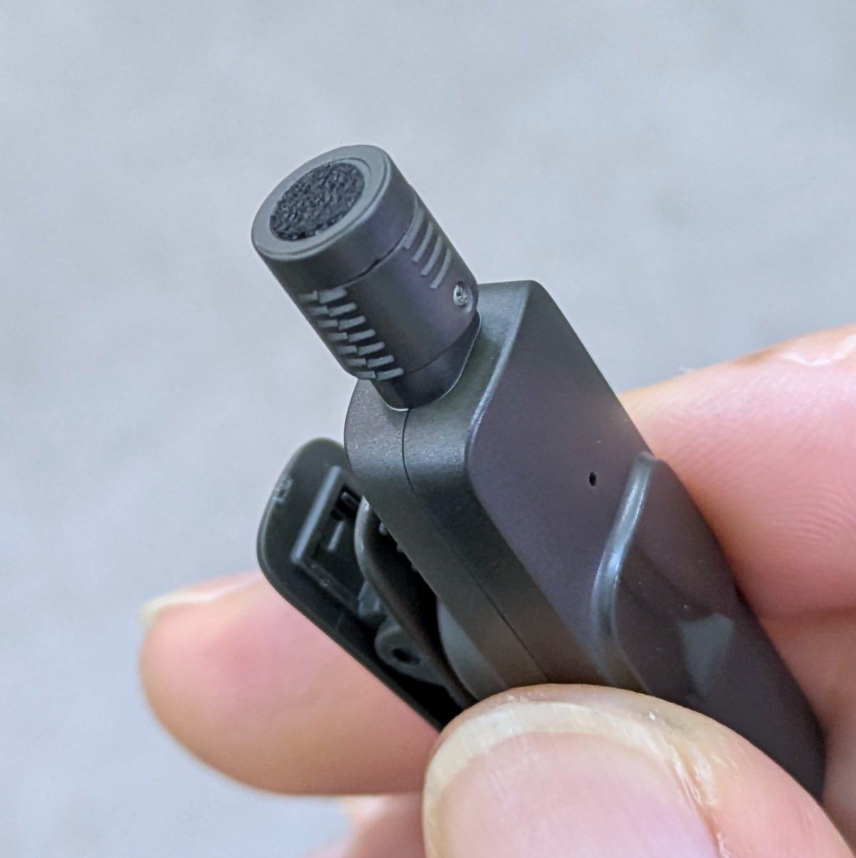 マイクのサイズは縦6.3センチ、横1.5センチ。クリップを含めた奥行きは2.3センチである。USB充電式でType-C接続となっている。