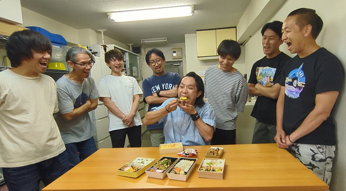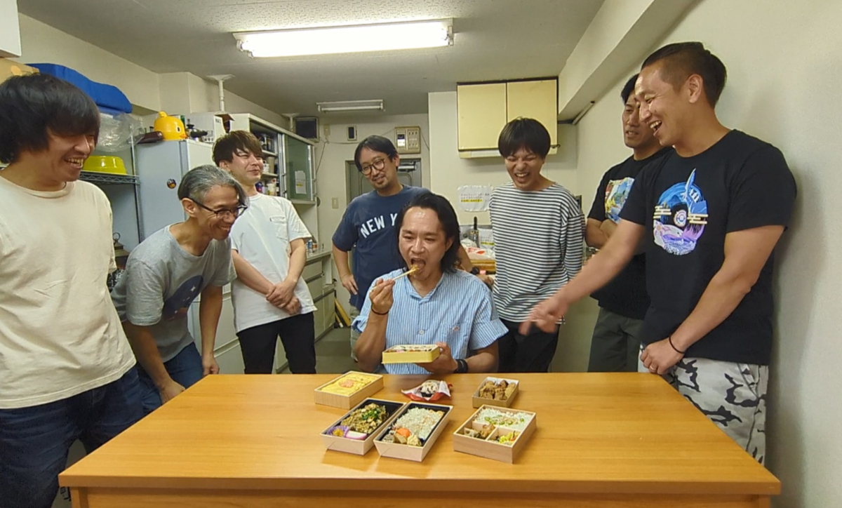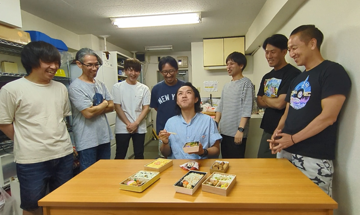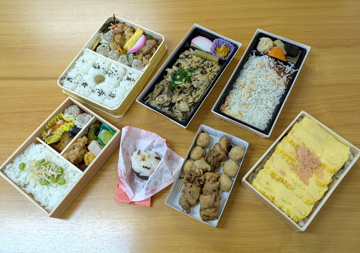以上、7名参加で7商品が出揃った。Yoshioと古沢が崎陽軒被りしているが、購入商品は別。意外にも幕ノ内系の弁当は少なく、やきとり・おにぎりという単品で勝負しているものもいる。
