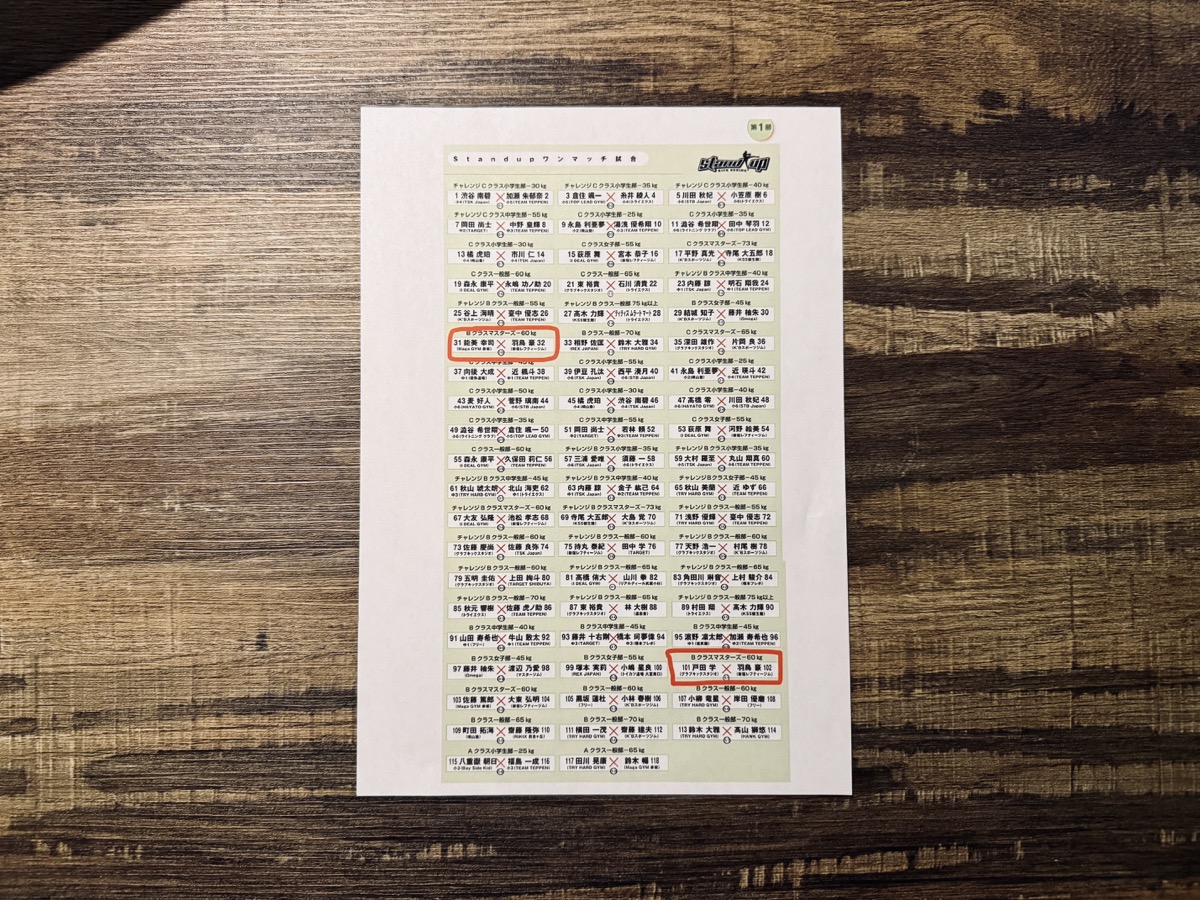 そこで私は全試合のカード表を、A4の紙にプリントして持参した。同ジムのみんなも見られるようにとの願いを込めて。これは役に立つぞぉ〜。