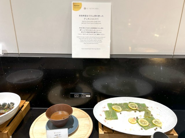 滋味深い茶粥や、鶏肉の大和茶風味焼き、奈良県産ほうれん草を使ったさしみこんにゃく、出汁巻き玉子吉野葛餡かけなど、どれもこれも優しいながらしっかりこくがあって大満足。