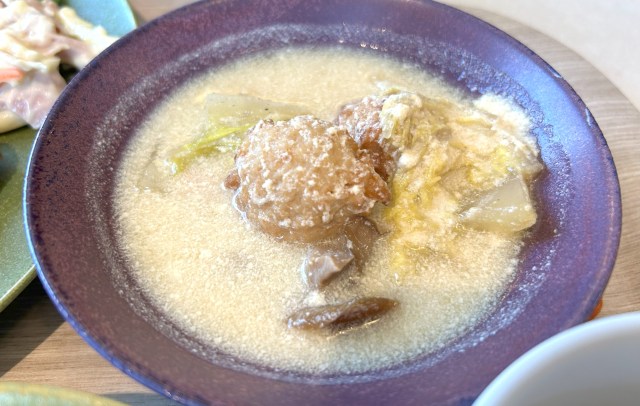 まず出汁の旨味がしっかりしていて、飲むだけでも大満足。加えて鶏団子や野菜など、具だくさんなのだから申し分なし。