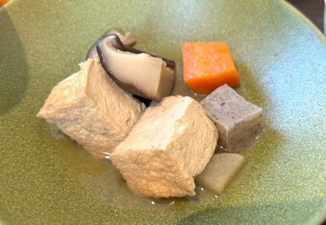 どういったものかというと、里芋や大根、人参などの野菜を使った煮物。具材にしっかり味が染みていて、口に入れるとジワっと美味しい。
