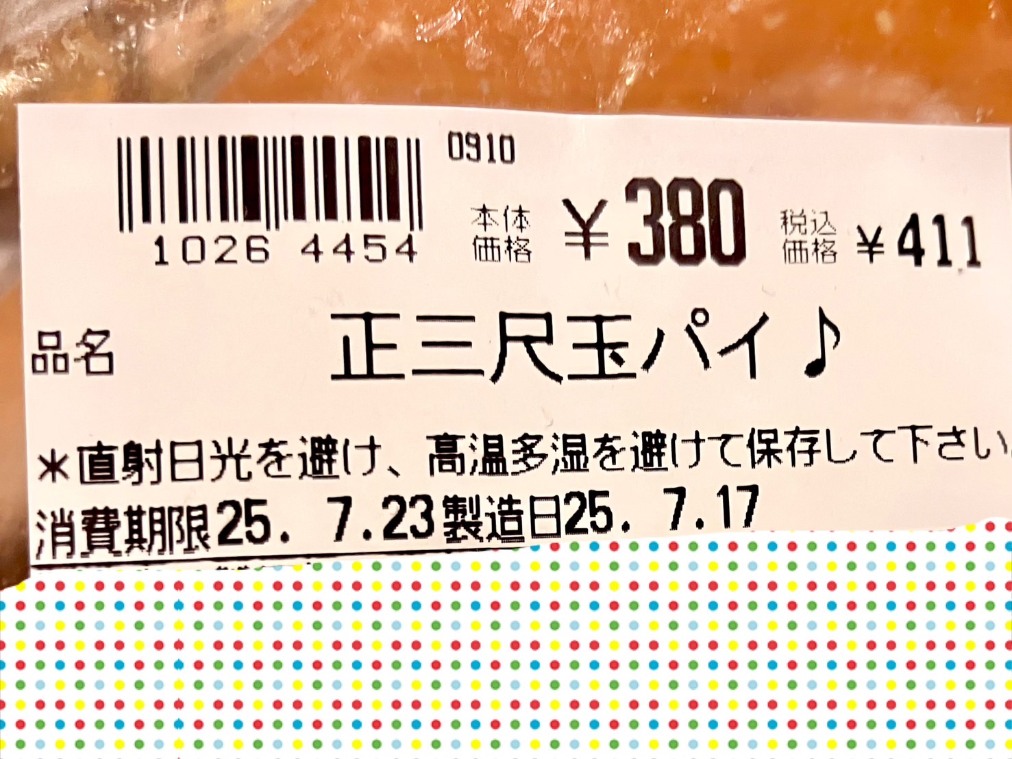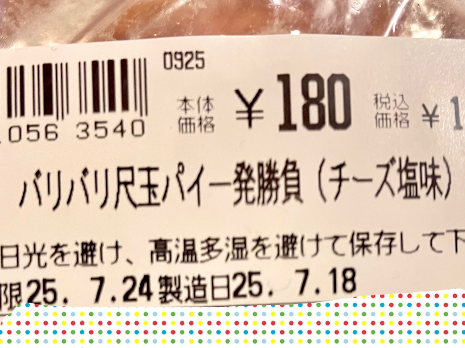 ▼「バリバリ尺玉パイ」のラベルには商品名が書いてあるだけなのに……