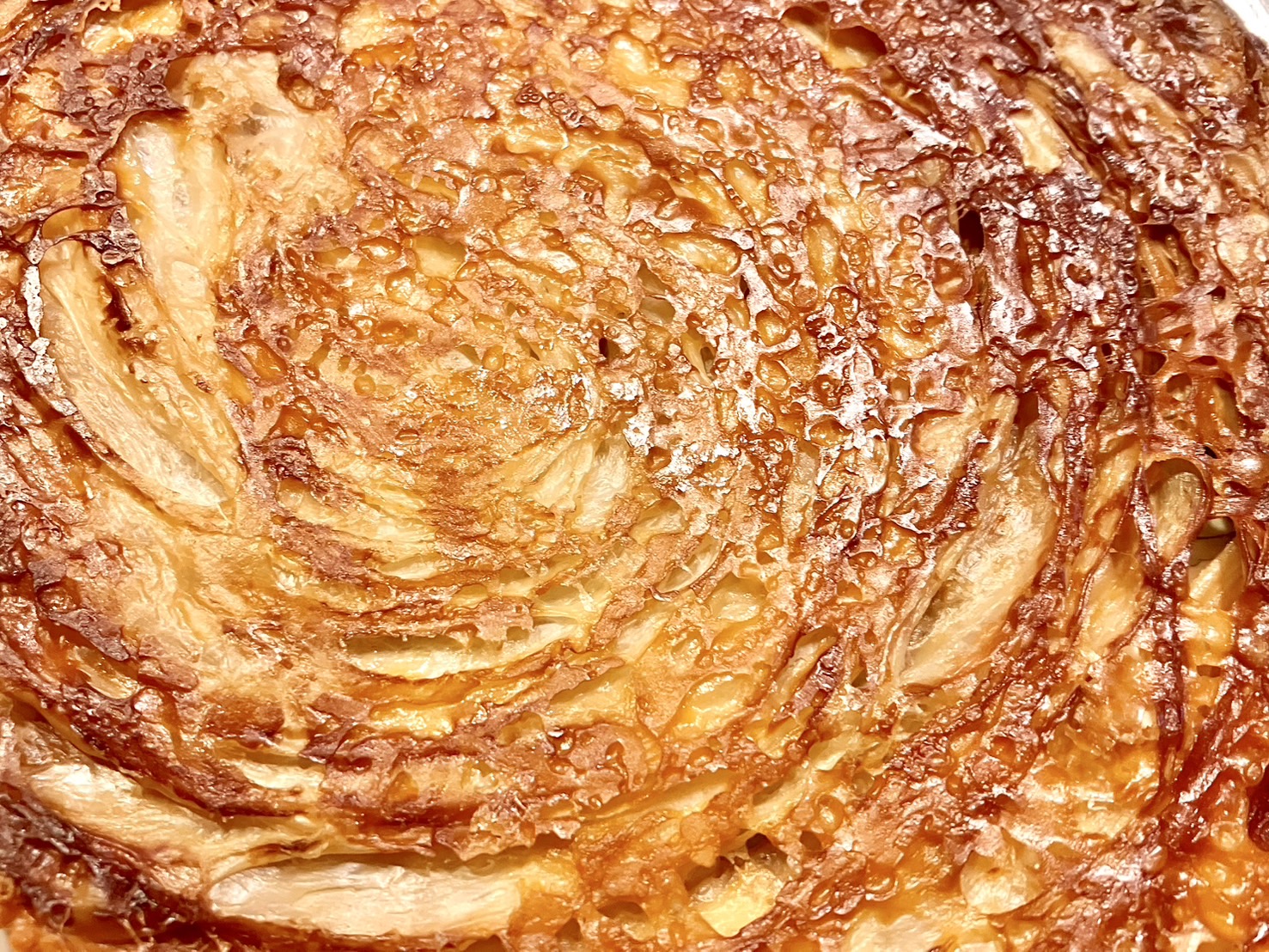 続いて尺玉パイを食べてみよう。正三尺玉パイと同様、綺麗な焼き色がついていてこちらもとってもおいしそう。
