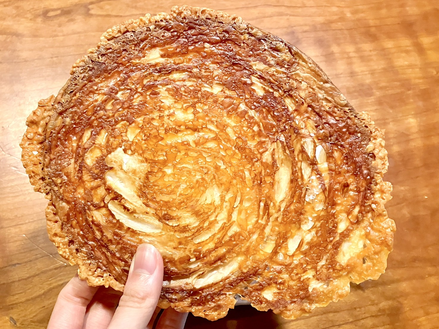 また、食感も「バリバリ尺玉パイ」という名前どおりサクサクというよりはバリバリ。サイズは大きいけれどかなり薄いので、完食のハードルは見た目ほど高くないと思う。