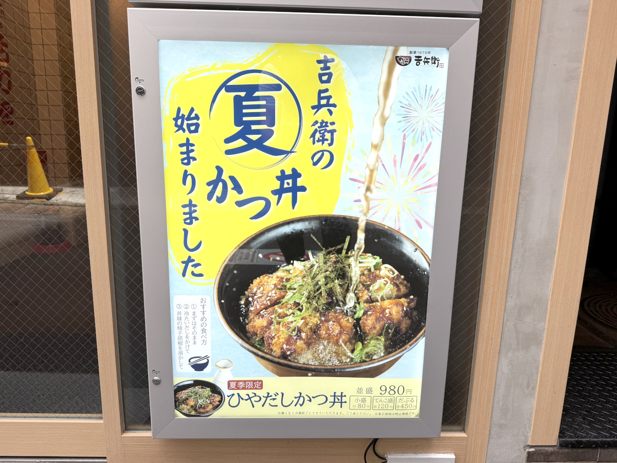 とか言いつつも、個人的に出汁かつ丼を食べたのは今回が初。夏季限定で「ひやだしかつ丼」を販売しているのは、今年6月に関東初上陸を果たした神戸発祥のかつ丼屋『吉兵衛(よしべえ)』である。