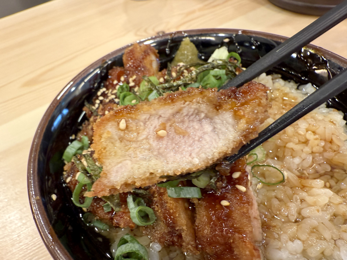 ……と思っていたものの「ひやだしかつ丼」は揚げたカツにソースがかかっており、流派としては「ソースかつ丼」に近かった。冷や出汁をかけずに食べれば「ソースが控えめのソースかつ丼」といった感覚だ。