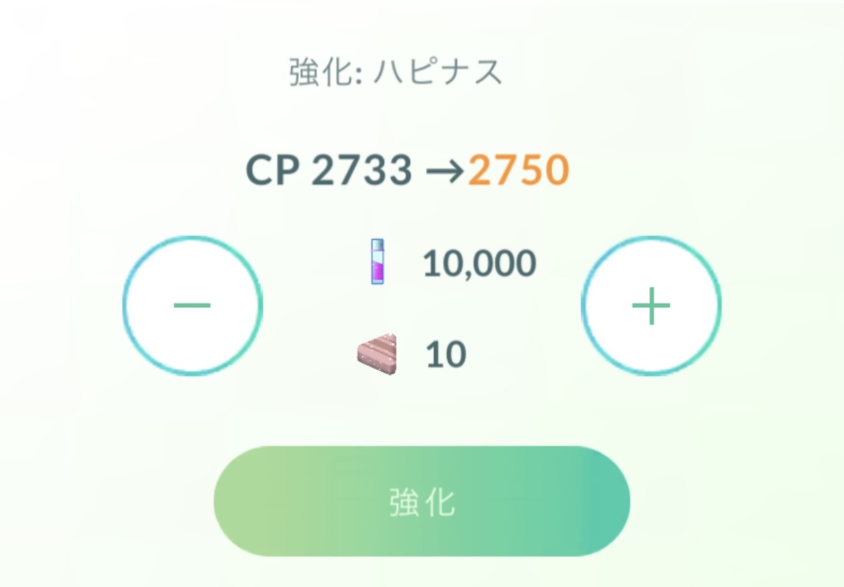 で、そのハピナスを含むダイマックスポケモンはPL(ポケモンレベル)40を目指したい。PL40はアメXLを突っ込む一歩手前の段階で、PL40にしたらひとまず育成終了と思ってOK。一生使えることを思えば、ハピナスはコスパも最高だ。