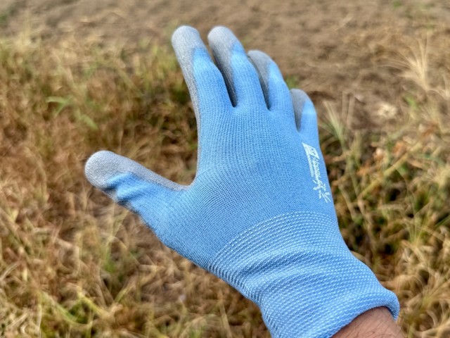 実際に強冷感の手袋をはめて作業してみたところ、ずっと冷たい感覚が続くわけではないが、いつもの軍手よりも蒸れにくい気がする。手袋をはめた時の気持ちよさと蒸れにくさで、いつもより作業に集中できたような……ニオイも今のところ気にならないし気に入った!