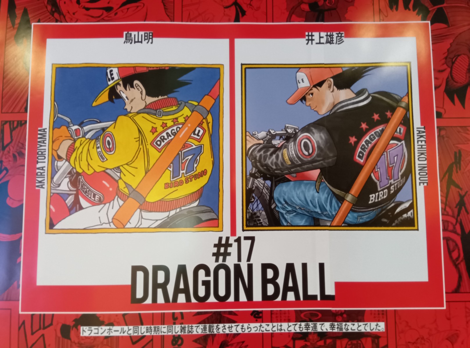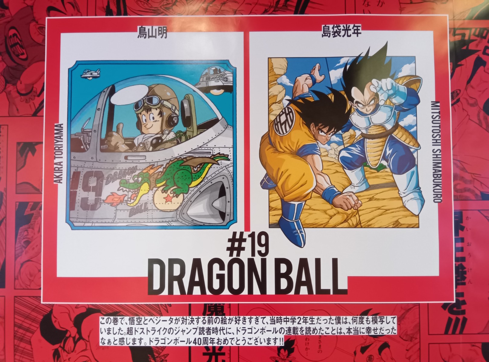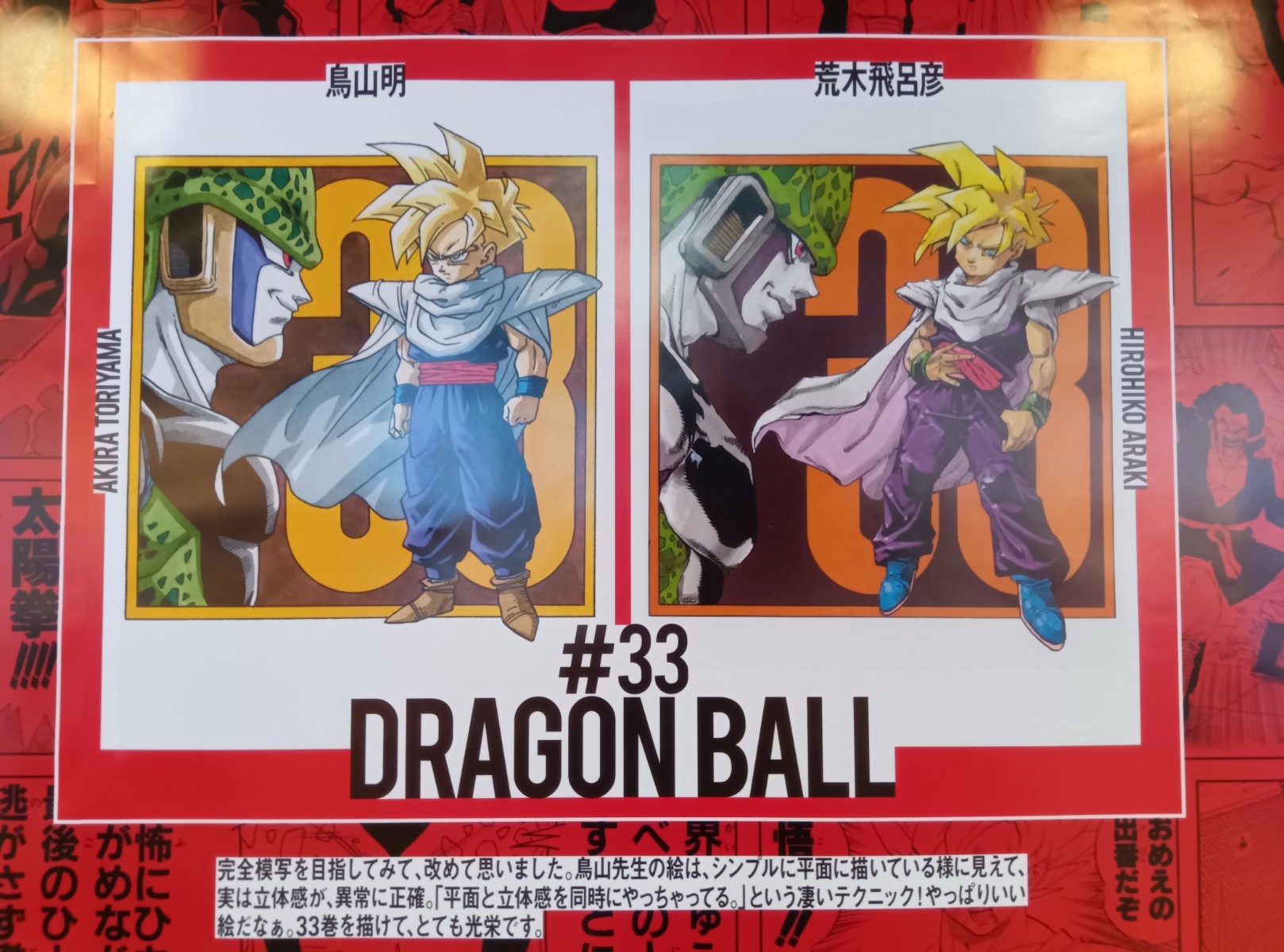 カバーイラストを冨樫義博先生が描いている……!! 鳥山先生のカバーイラストと並べられていて、よく見るとそのイラストの下には冨樫先生から鳥山先生へのメッセージも書かれていた。