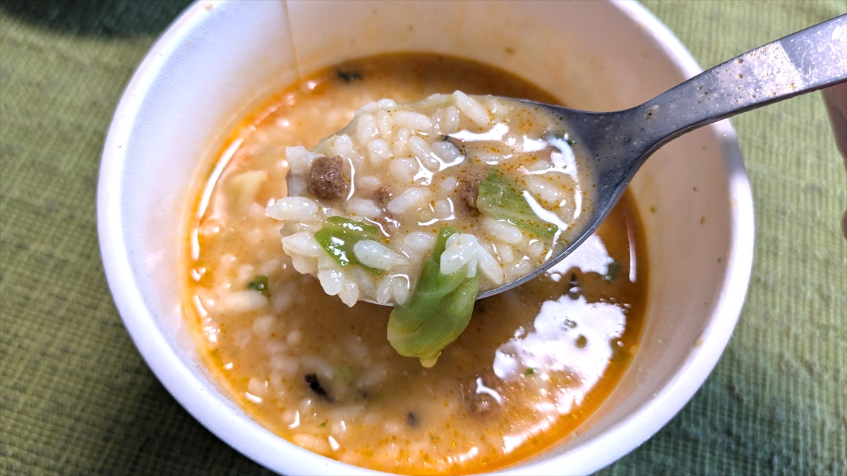 またキクラゲ・キャベツ・ニンジン・肉のそぼろと食感の違う具材が入っており、通常のカップメシと比べると豪華。なるほど、こだわって作られたメシであることがよくわかる。