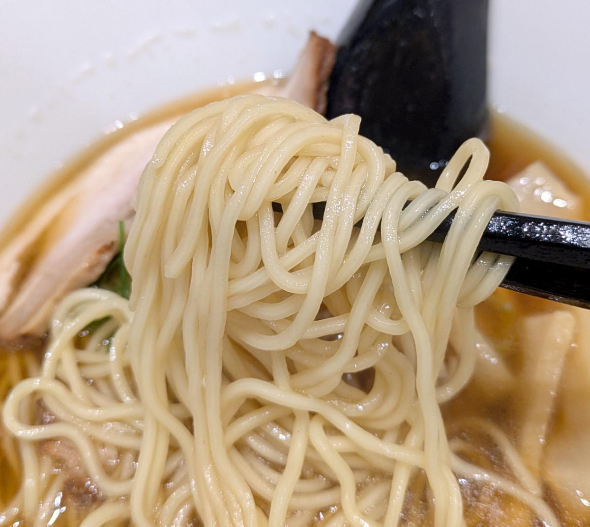 すすってみると、たしかに口当たりはあっさりしているが、後味がしっかりしている。しっかりというか、個人的には少々重いかなあ。醤油辛い印象を受ける。