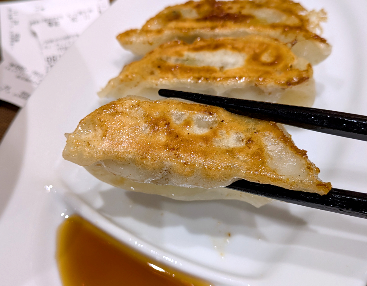 サイドの餃子は、あくまでもオマケ。ないよりあった方が良いという感じでメニューに加えたのかも。ちなみにビールがあるので、つまみにするのにちょうどいい。